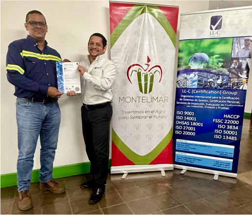 El Ing. Oscar Montealegre, gerente general de Corporación Montelimar, destacó la importancia estratégica de esta certificación para el futuro de la empresa: “Este logro refleja la capacidad de nuestra organización para operar bajo estándares de clase mundial, nos posiciona con mayor solidez frente a nuestros clientes y socios comerciales, y reafirma nuestra visión de ser una empresa líder, sostenible y confiable en la agroindustria”.