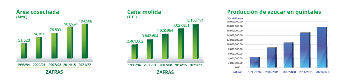 Datos de ProducciónEncuentra información sobre resultados de zafra de los ingenios nicaragüenses: área de cosecha, producción de azúcar, generación de energía, entre otros; además, estimados de producción de la zafra actual.