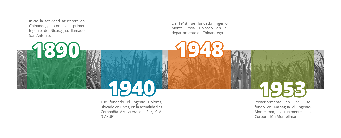En 1890 fue fundado en Nicaragua el primer ingenio, llamado Ingenio San Antonio; siendo actualmente el más grande a nivel nacional.